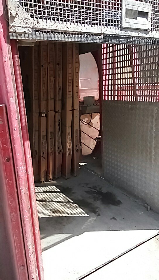 2018年5月7日太谷工地門已到貨正在用電梯往樓上運(yùn)